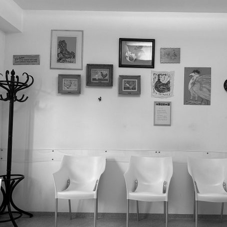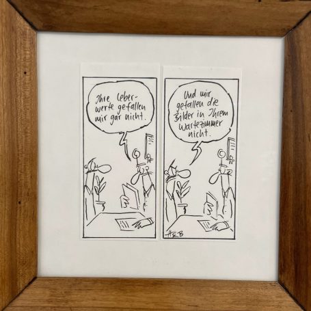 Original-Gemälde aus dem Bereich der "Komischen Kunst" schmücken die Räumlichkeiten und tragen dazu bei, dass Sie sich wohlfühlen. Auch wenn Lachen nicht in allen Fällen die BESTE Medizin ist, macht Humor die Erkrankung erträglicher.